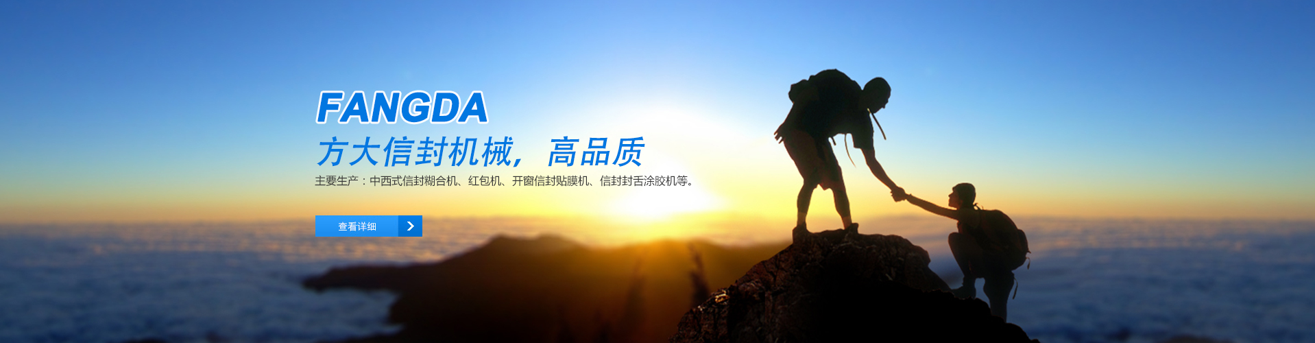 瑞安方大信封機械有限公司,是專業(yè)生產(chǎn)信封機糊合設(shè)備系列產(chǎn)品的企業(yè),主要產(chǎn)品有:中西式信封糊合機、紅包機、開窗信封貼膜機、信封封舌涂膠機等。實力來自規(guī)模,品質(zhì)源自專業(yè)。我廠擁有專業(yè)老練的工程設(shè)計人員,經(jīng)驗豐富的生產(chǎn)安裝人員,嚴(yán)謹(jǐn)認(rèn)真的質(zhì)量檢驗人員,從而保證了所生產(chǎn)機械的優(yōu)良品質(zhì)。此外,我廠也將從技術(shù)上、性能上不斷改進提高,以更好的滿足客戶的需求。“客戶至上,服務(wù)為本”是我廠長期一貫的服務(wù)理念,從安裝、測試、保養(yǎng)、維修等售后服務(wù),我們會給予客戶充足的信息資訊與技術(shù)支持,因此在業(yè)界獲得良好的口碑及信譽,您的滿意是我們的榮耀!歡迎您來電查詢、來人參觀,我們一定能給你滿意的答復(fù)!秉承“顧客至上,銳意進取”的經(jīng)營理念,堅持“客戶為先”的原則為廣大客戶提供溫馨的服務(wù)。歡迎惠顧!